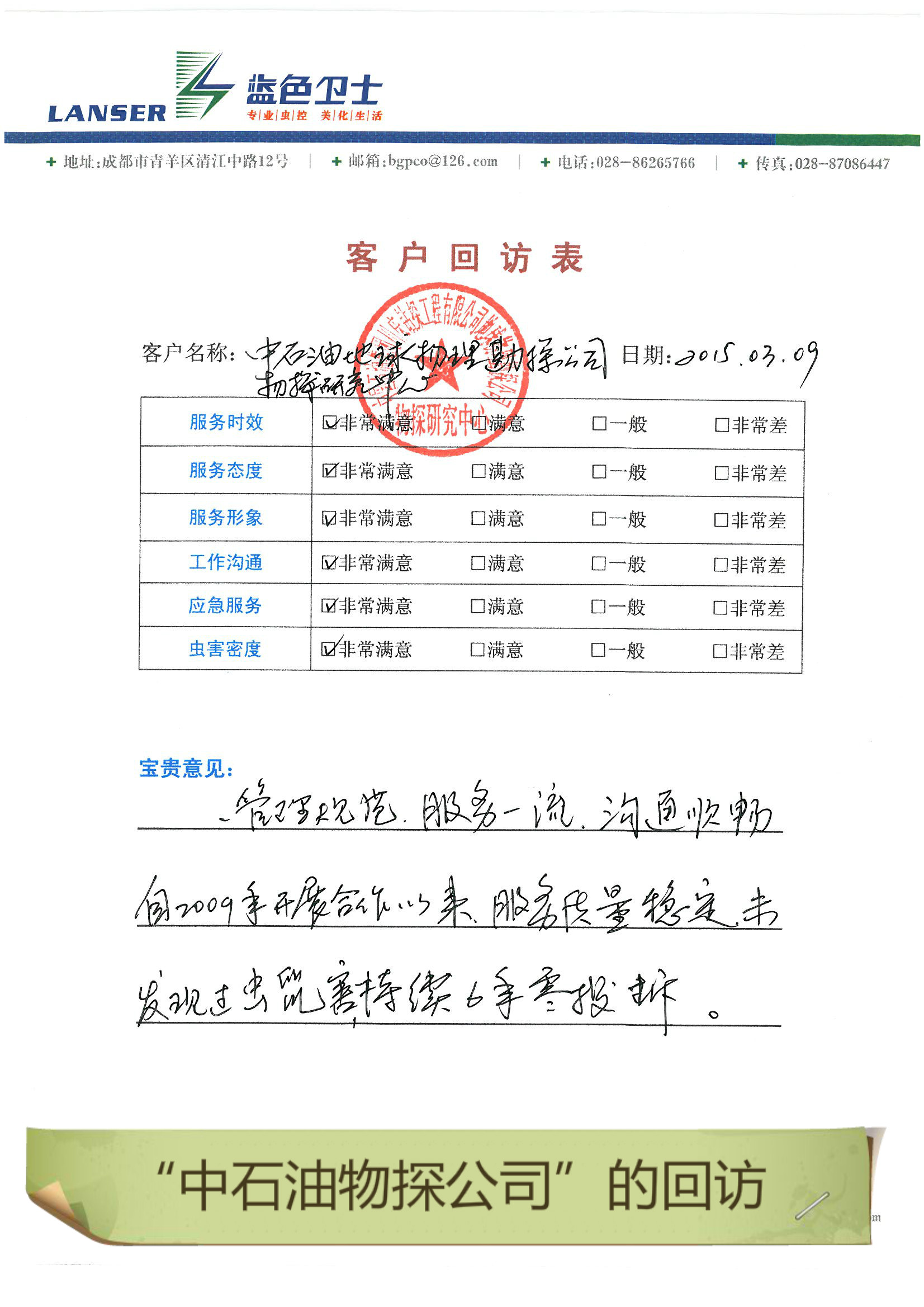 通過合作,對四害的消殺控制的很好,符合項目品質要求!